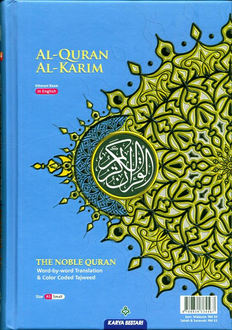 • If you are looking for a Quran with Arabic-English word-for-word translation , in Rasm Uthmani Script, with color coded tajweed, all-in-one volume, at an excellent price, then look no further.