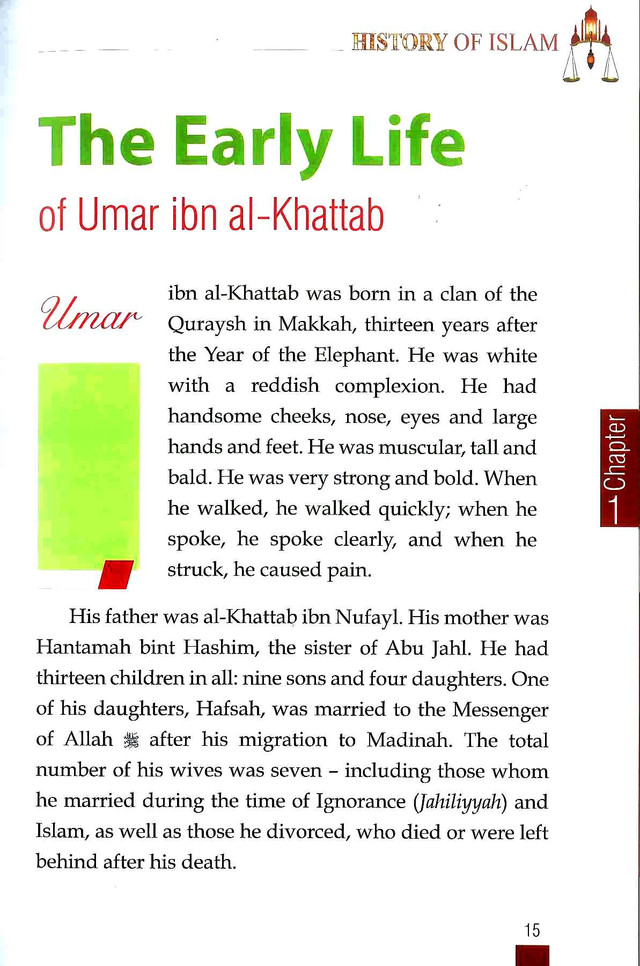 History of Islam - Umar Ibn al Khattab Rightly-Guided Caliphs This is the second volume from this series, which deals with the life of Umar ibn al-Khattab (عمر ابن الخطاب), the second of the Four Rightly-Guided Caliphs. The evaluation of Amir al-Mu'minin Umar al-Farooq, may ALLAH be pleased with him, and his far-sighted policies is captured in a statement attributed to the Prophet صلی الله علیهِ وآله وسلم, 'There were in the nations before you "inspired people", and if there is any one of them in my nation, it is Omar.' Darussalam presents the entire History of Islam to our youth in language that appeals to them, in a simple yet lucid manner. The first four volumes in this series explore Islamic history during the period of the first Four Rightly-Guided Caliphs. Later volumes would be devoted to the History of Islam, down through the ages to modern times, insha'ALLAH. History of Islam - A Reader Series - Suitable for Grade Six (Age group 10+) The Age of the Rightly Guided Caliphs - Al-Khulafa ar-Rashidun Umar bin al-Khattab (R.A): The Second of the Four Rightly Guided Caliphs